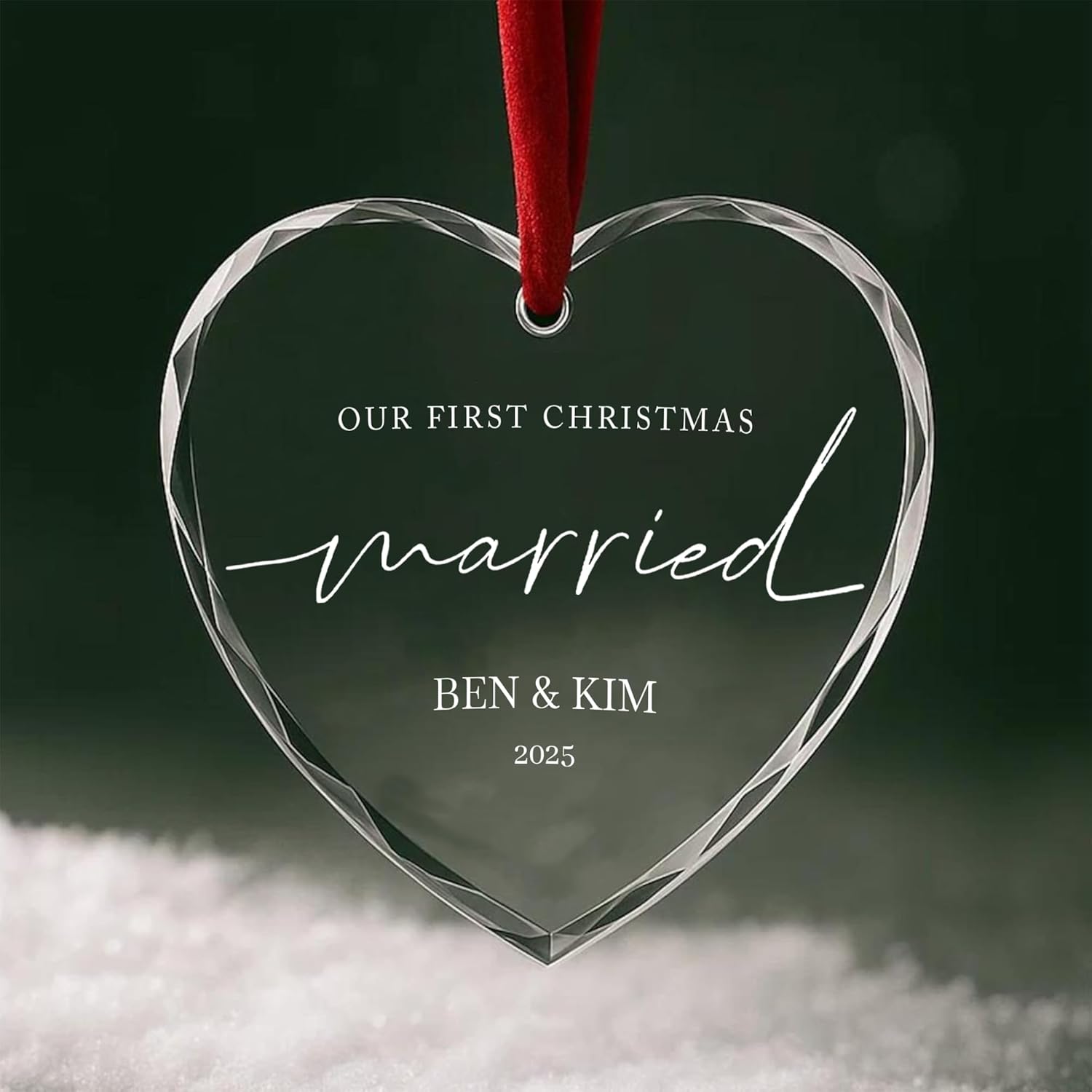 • Custom Engraved Glass Ornament 2025 – Personalize with couple names and special date, making it a timeless keepsake for weddings, engagements, anniversaries, or first Christmas celebrations.