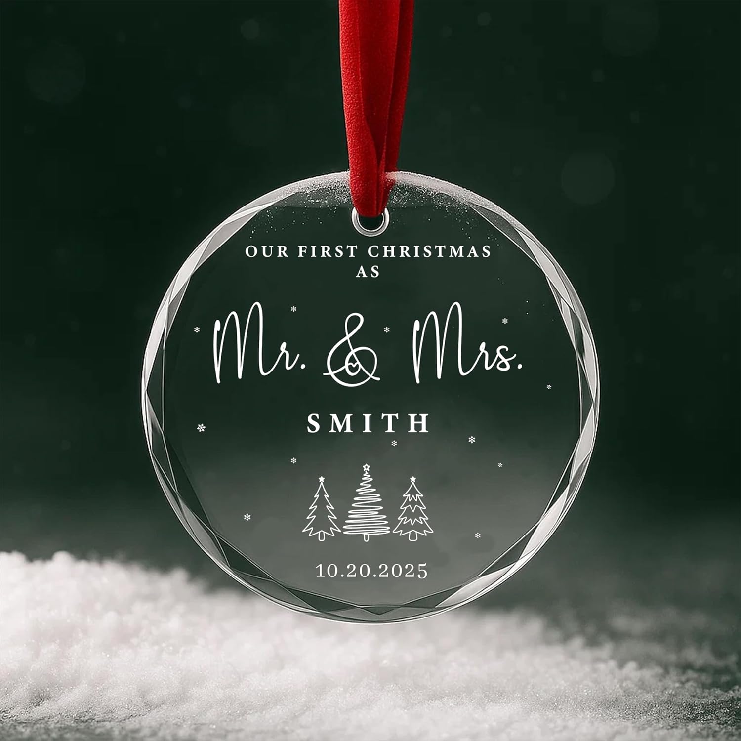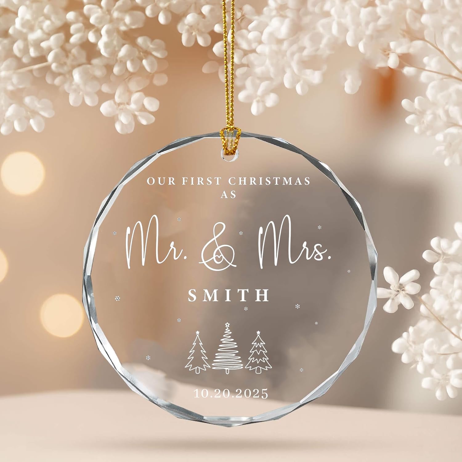 Personalized Glass Ornament 2025 for Married Couples with Name, Custom Wedding Keepsake Gift for Newlyweds, Anniversary or Christmas Décor, Mr and Mrs Ornament A1