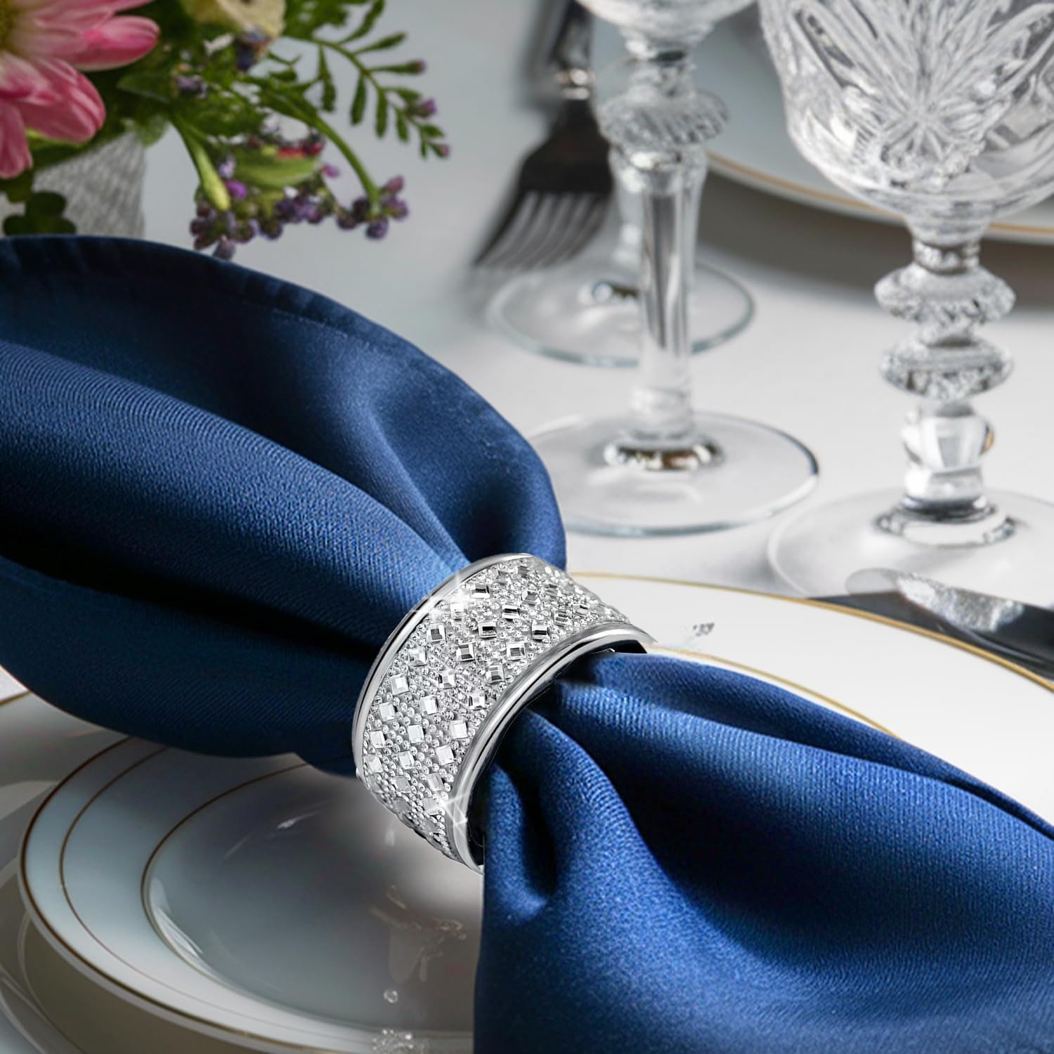 Silver Diamond Napkin Ring Set of 24 Rhinestone Crystal Glass Framed Napkin Holder for Table Decor,Thanksgiving,Christmas,Anniversary, Birthday, Holiday, Party Serviette Buckles Home Decoration