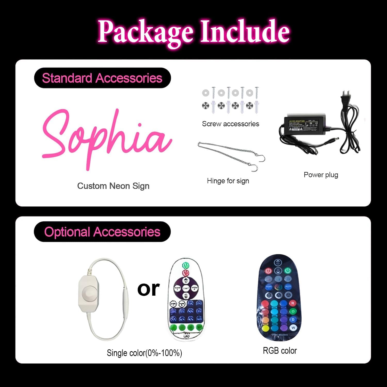 • đź’ˇInstant Ambiance, Easy Setup: Transform any room in minutes. Your personalized neon light name sign arrives with a simple plug-and-play setup and all necessary mounting hardware. Just hang it up, plug it in, and instantly enjoy the vibrant, energy-efficient LED glow that elevates your home's atmosphere.